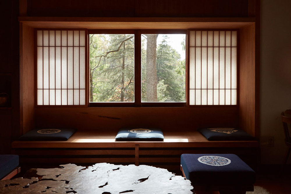 Precious Pieces restored Japanese traditional style fusuma sliding doors at the birth place of George Nakashima Woodworkers in New Hope, PA. These historical residence doors have been updated and replaced with the precise mid-century Washi pattern using Precious Pieces’ film reinforced tear/poke proof Washi. Historical visual elements are preserved while infused with modern durability.
